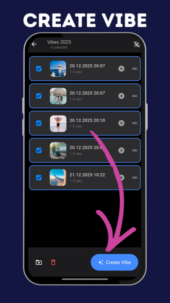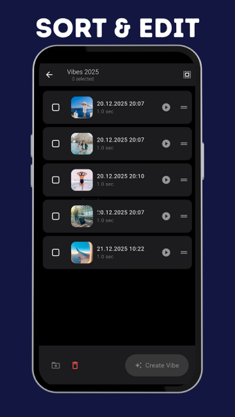 Vibelapse - Vibenizi Oluşturun , sıradan video kayıtlarını çarpıcı zaman atlaması eserlerine dönüştürmek için tasarlanmış bir mobil uygulamadır. Zaman içinde hareketi sergilemek isteyen yaratıcılar için hızlı, sezgisel bir yol sunan bu ücretsiz çoklu ortam uygulaması, hız, kare aralıkları ve kamera yönü üzerinde hassas kontrol sağlar.